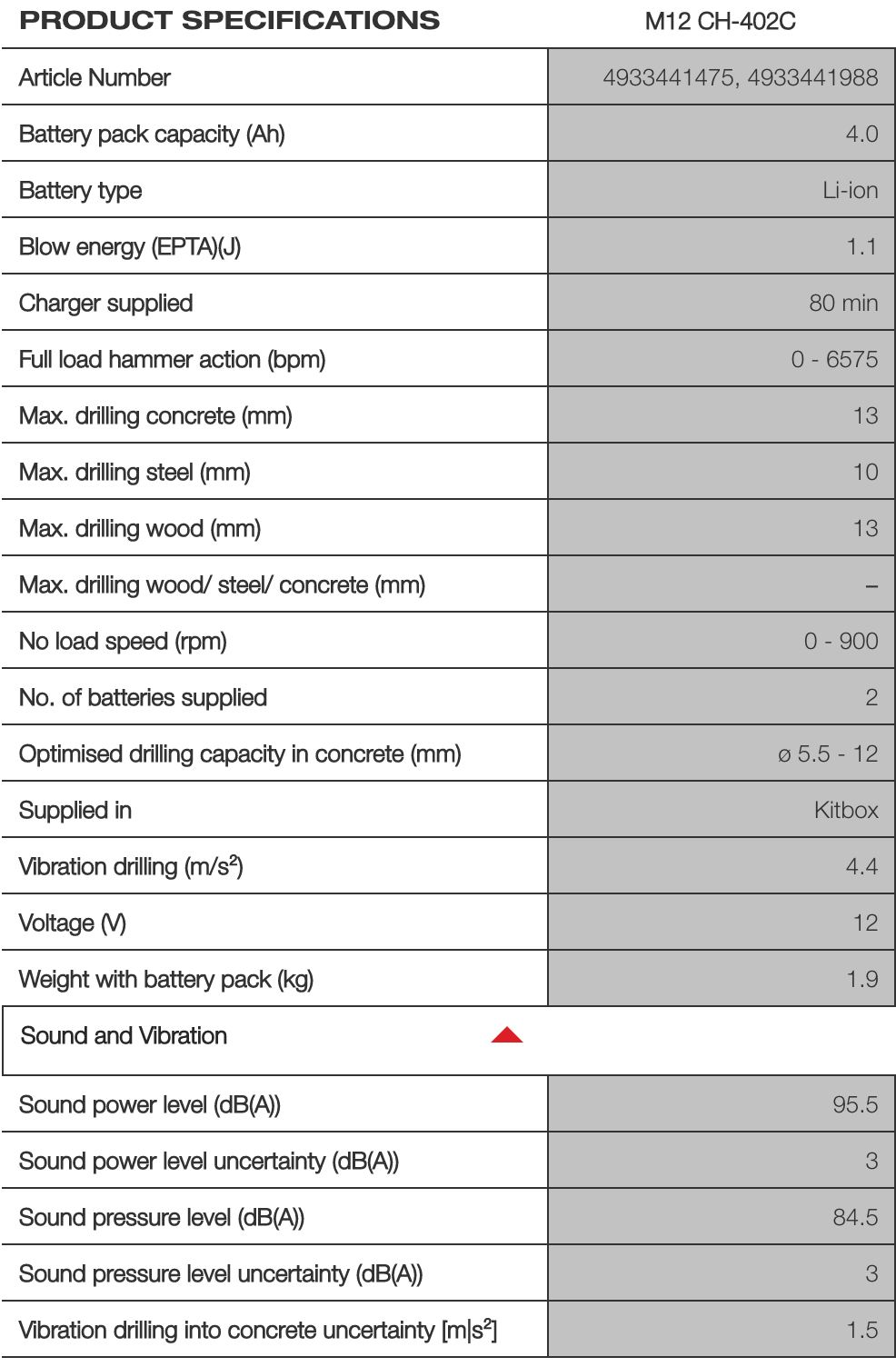 Industry's first brushless compact 12V rotary hammer with 1.1 Joules (EPTA), 0 - 6575 bpm & 0 - 900 rpm Exceptionally low vibration value 4.4 m/s² can be used for 8 hours in a day Will drill ove...
