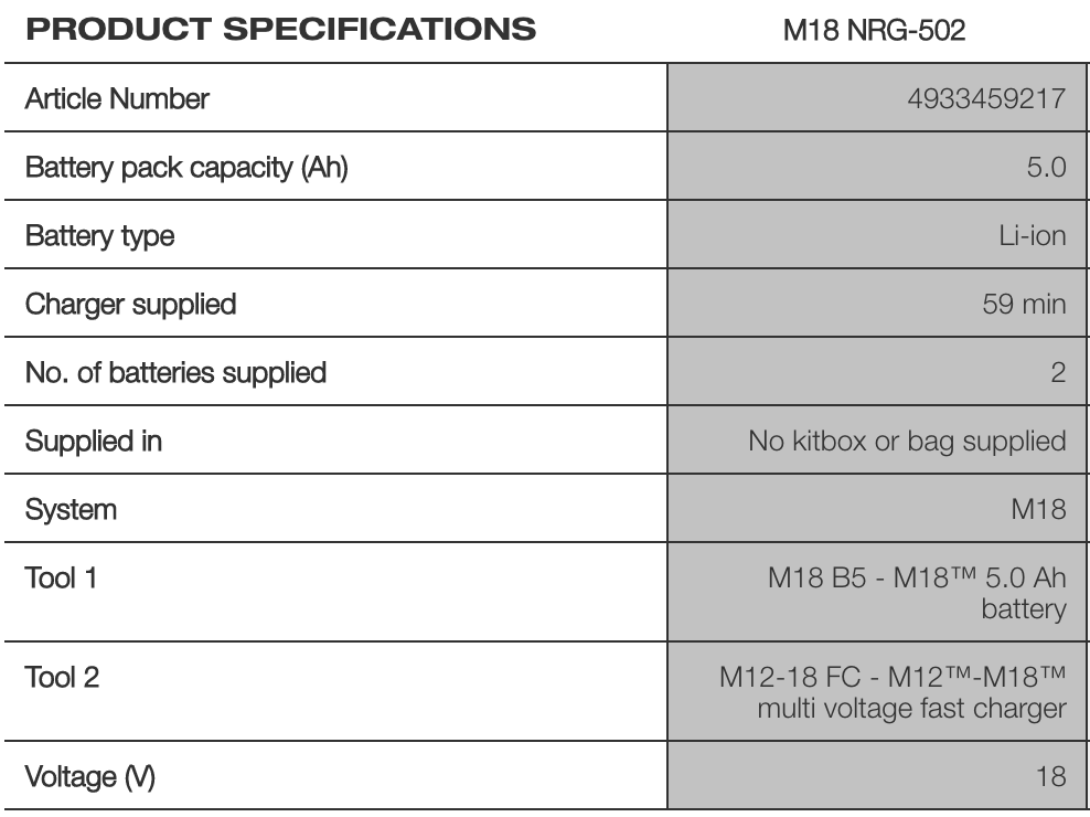 M18 B5 - M18 5.0 Ah battery M12-18 FC - M12-M18 multi voltage fast charger ..